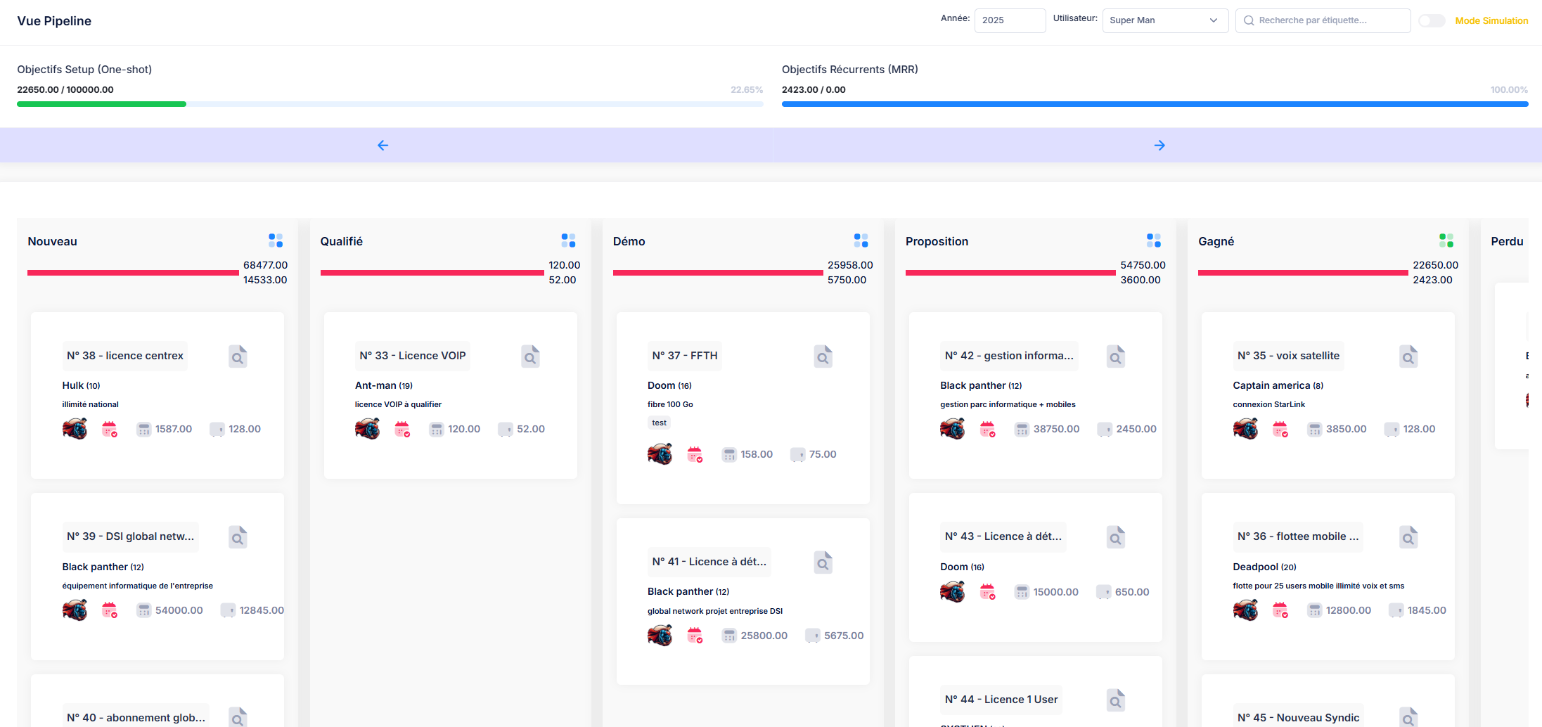 L'exemple ci-dessous illustre un opérateur télécom, mais cette structure s'applique à tout secteur : commerce, industrie, services... Un même devis ou facture peut combiner produits récurrents (abonnements) et achats ponctuels.