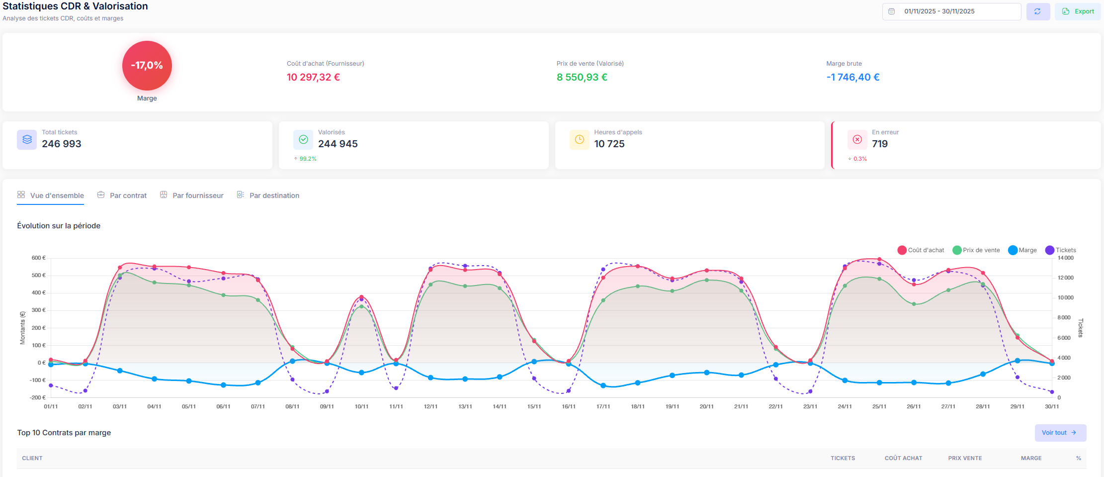 Valorisation automatique des communications selon vos grilles tarifaires